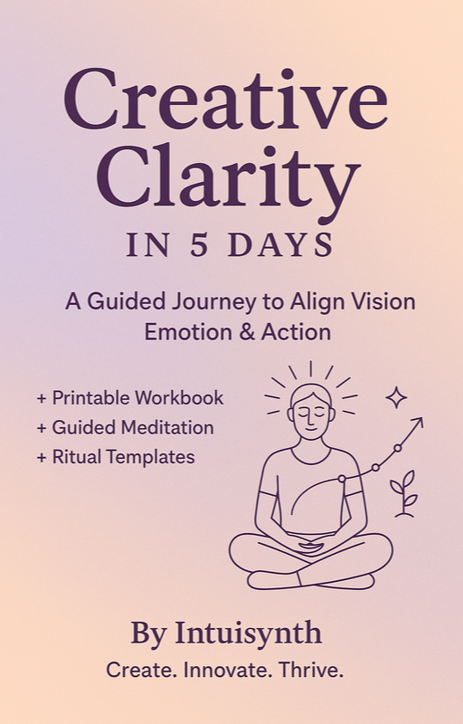 Creative Clarity in 5 Days is a self-paced mini-course that helps you overcome creative overwhelm by aligning your vision, emotions, and actions. Includes a workbook, guided meditation, planning tools, and daily prompts to build lasting clarity—all for $7.